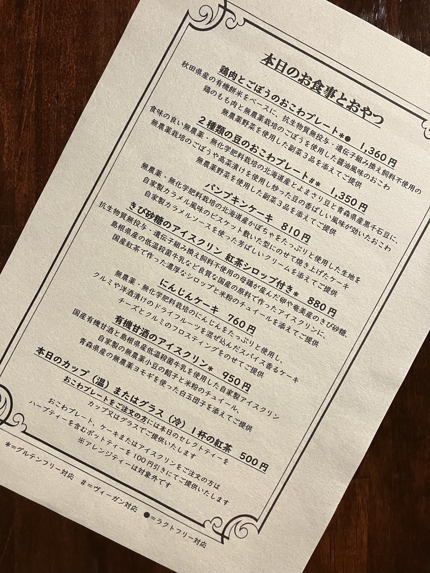 #サルトリイバラ喫茶室 #オーガニック #無農薬 #自然栽培 #薬膳 #国産紅茶 #国産ハーブティー #貸しギャラリー #今週のメニュー #japanesetea #organic #nishiogikubo #blacktea #naturalfarming #rentalgyallery