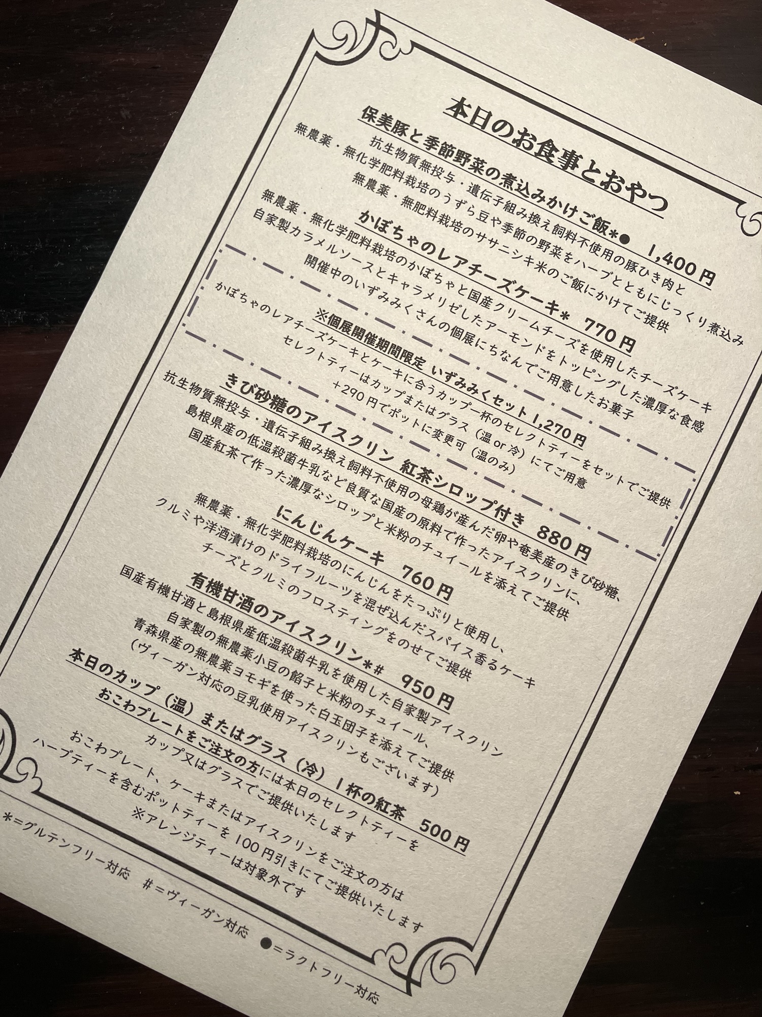 #サルトリイバラ喫茶室 #オーガニック #無農薬 #自然栽培 #薬膳 #国産紅茶 #国産ハーブティー #貸しギャラリー #今週のメニュー #japanesetea #organic #nishiogikubo #blacktea #naturalfarming #rentalgyallery