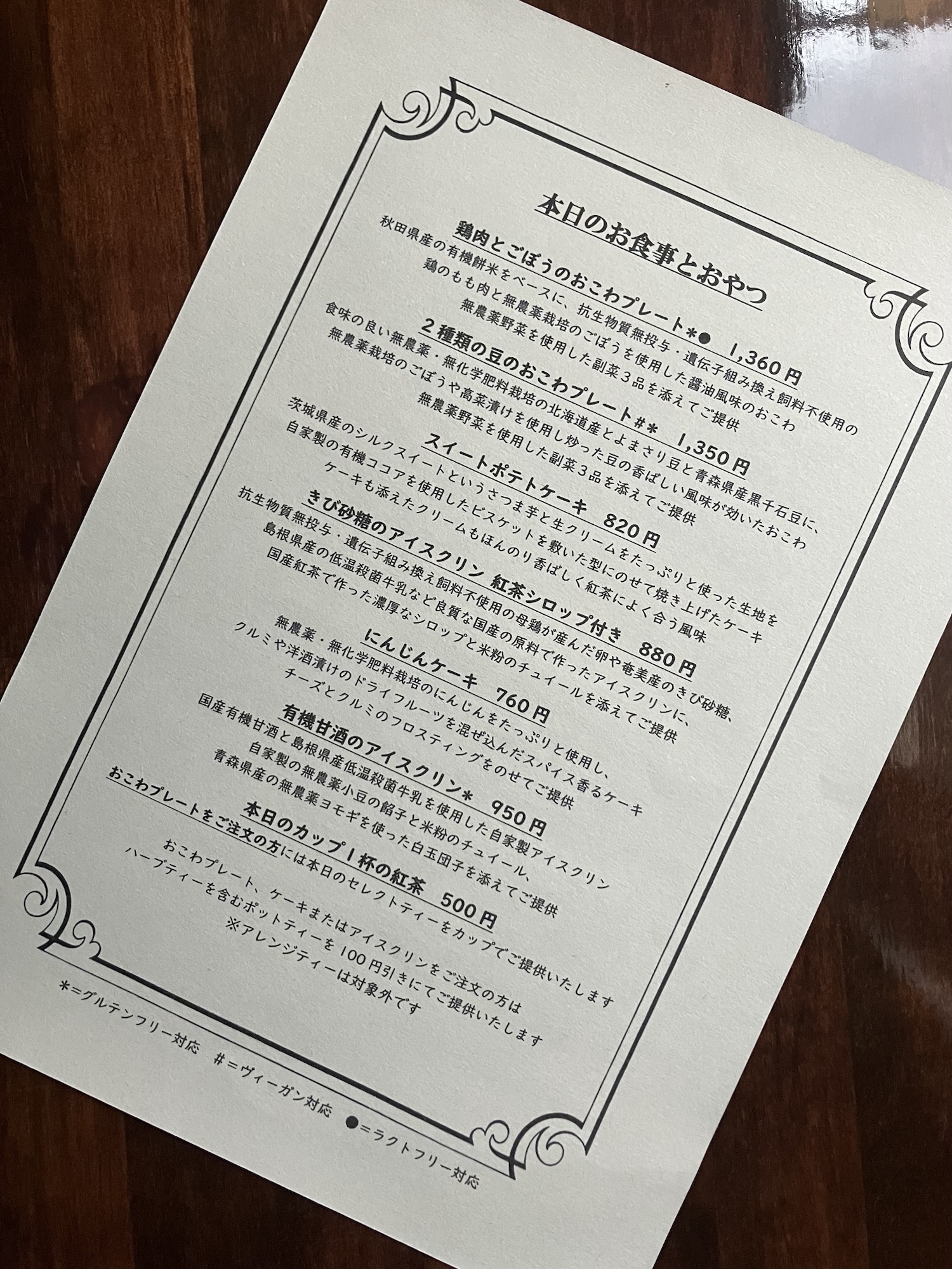 #サルトリイバラ喫茶室 #オーガニック #無農薬 #自然栽培 #薬膳 #国産紅茶 #国産ハーブティー #貸しギャラリー #今週のメニュー #japanesetea #organic #nishiogikubo #blacktea #naturalfarming #rentalgyallery