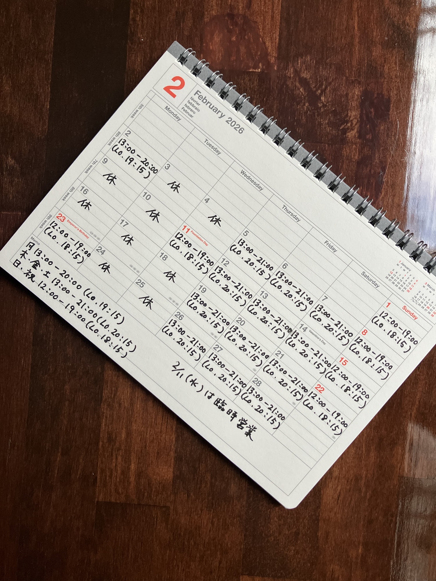 2月11日(水)の祝日は営業いたします。